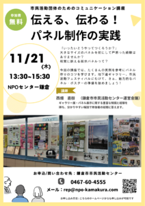 恒例の市民活動パネル展を鎌倉市役所1階ロビーにて行います。鎌倉の課題解決に取り組 […]