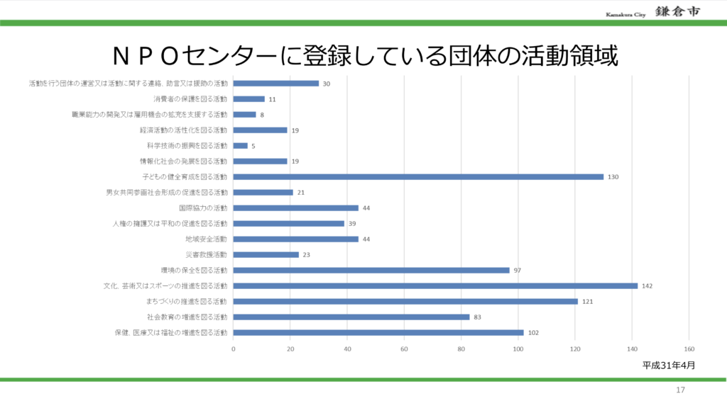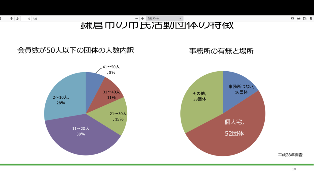 鎌倉は近隣の横浜や藤沢に比べて小さなまちなのに、負けず劣らず数多くのNPO団体が活動しています。
