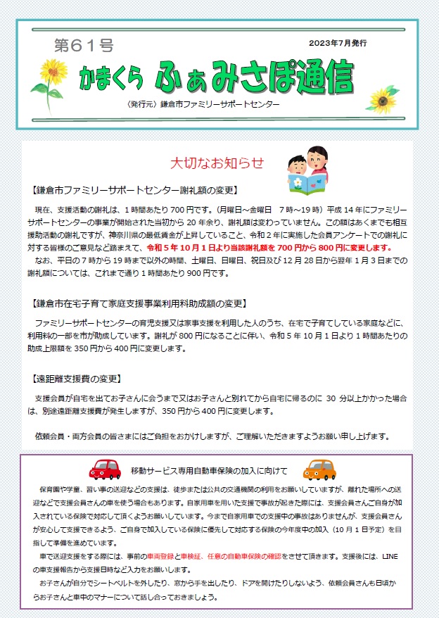「鎌倉市ファミリーサポートセンター」の開設に合わせ発足し、ファミサポ事業を鎌倉市から受託し運営を行っています。