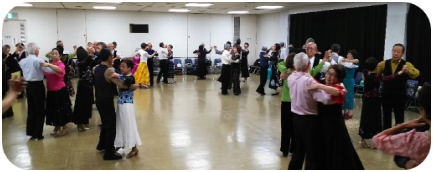社交ダンス愛好者が気軽に参加し、指導資格者からの無料社交ダンス指導が受けられます。