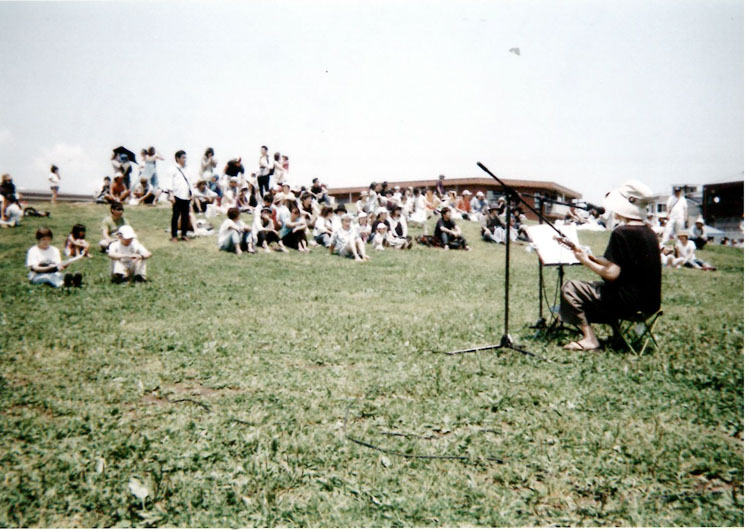 情操教育を目的としてマンドリン1台で弾き語りをします。子どもや両親、参加者と心のふれあいを大切にしています。