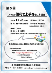 申込み・問合せ電話:0467-60-4555 (NPOセンター鎌倉)