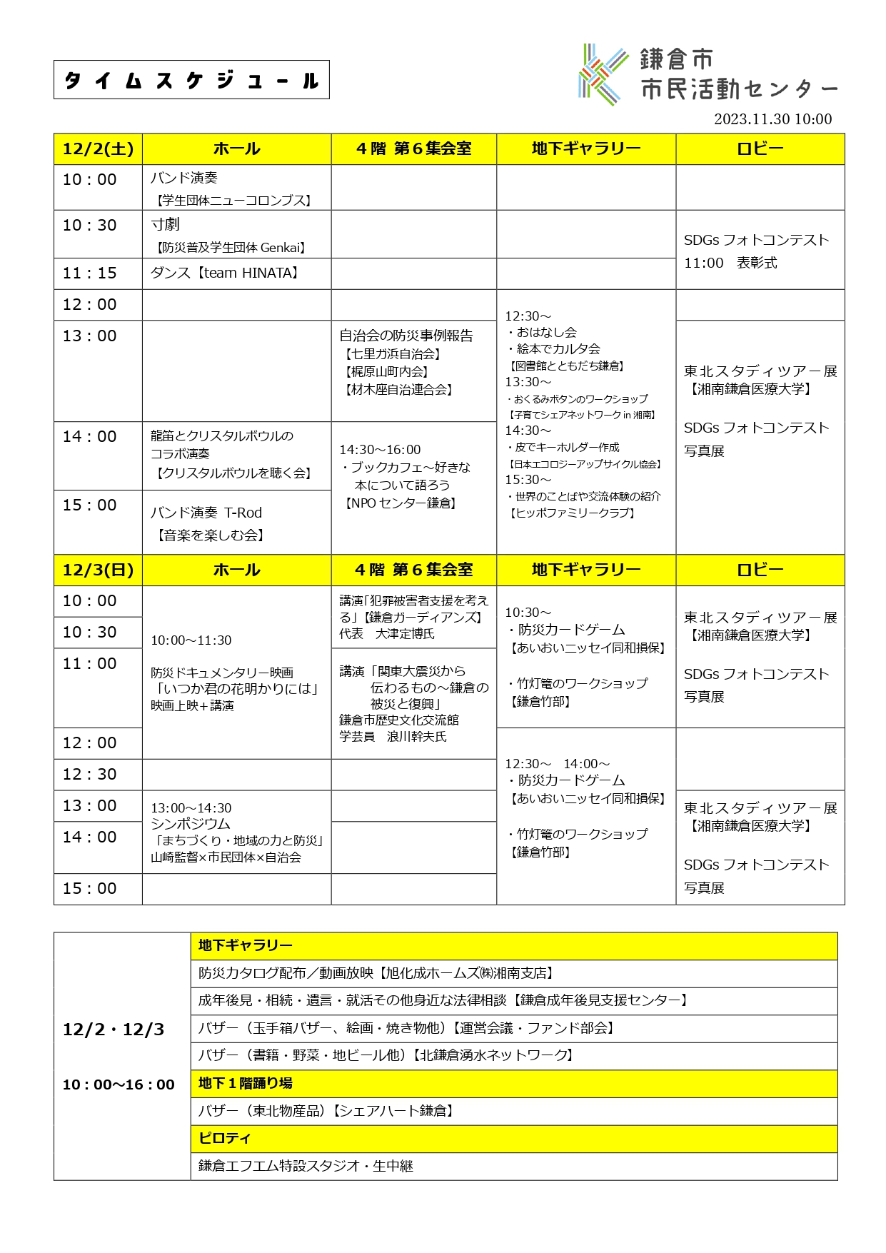 協 力: 鎌倉市市民活動センター登録団体、鎌倉市、鎌倉社会福祉協議会、鎌倉青年会議所、鎌倉エフエム、湘南鎌倉医療大学、ほか