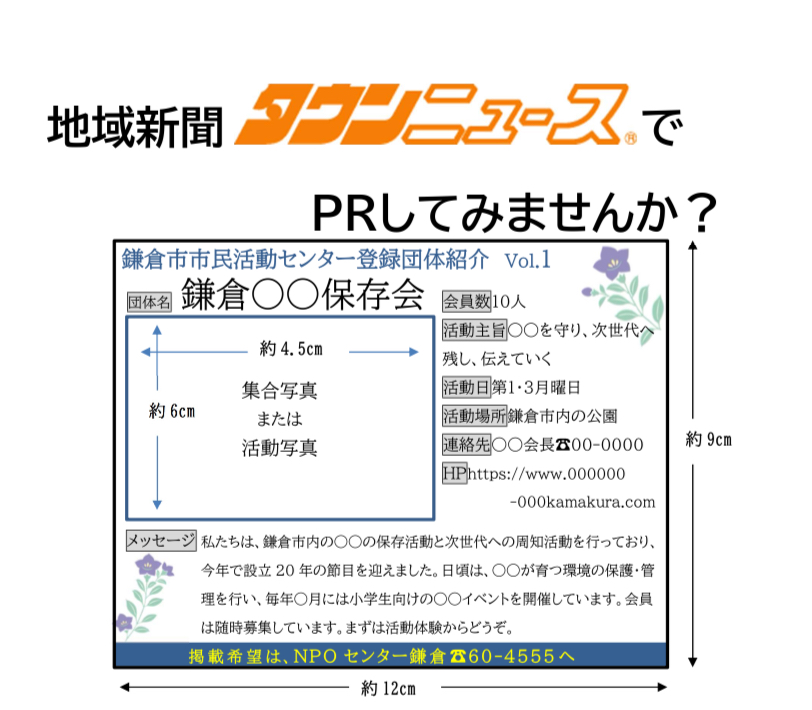 その地域新聞にあなたの団体の紹介を載せてみませんか。団体のPRや会員募集も募れます。