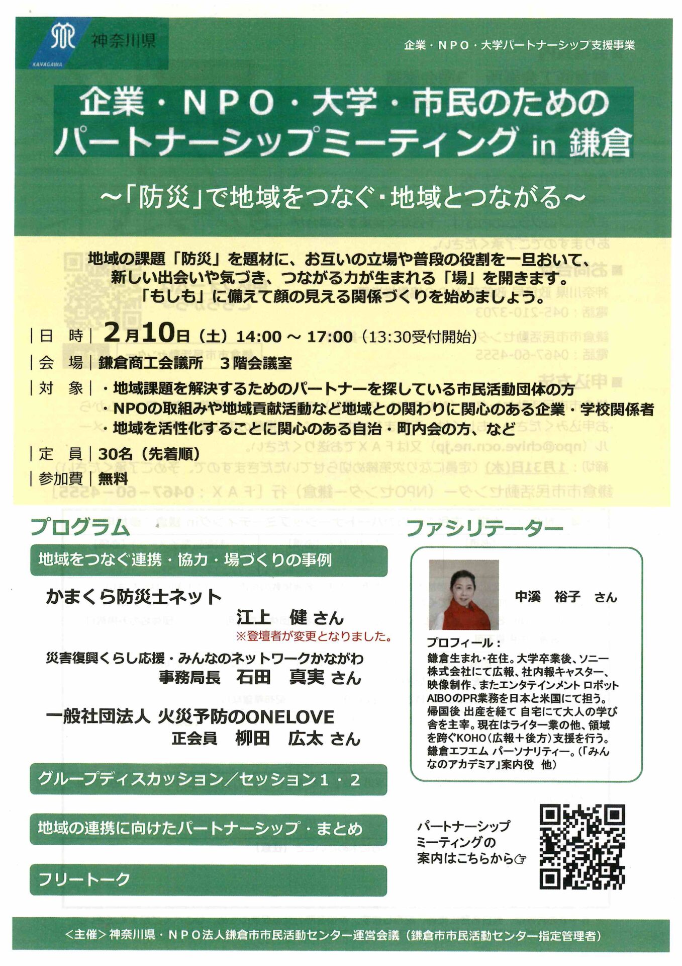 | 主催 | 神奈川県・NPO法人鎌倉市市民活動センター運営会議(鎌倉市市民活動センター指定管理者) |