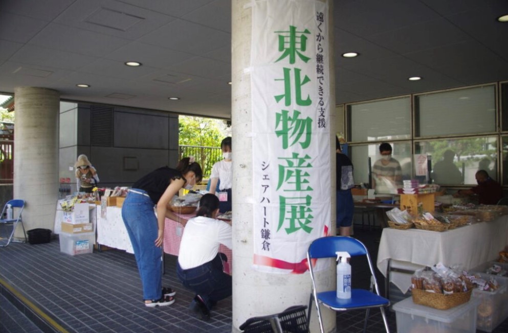 障害者や引きこもりの方と一緒に、東北応援物産展で商品の陳列・販売のボランティア体験をしてもらいました。初めての販売業務、またさまざまな年齢の方との触れ合いも初めてで、やや緊張気味の様子でした。一緒になったボランティアの先輩方と進路の相談をする機会もあったり、学校ではできないような経験ができたと思います。 学生時代にさまざまな世界を知ることもとても大事です。暑さとの戦い!もあり、お疲れ様でした。(シェアハート鎌倉)