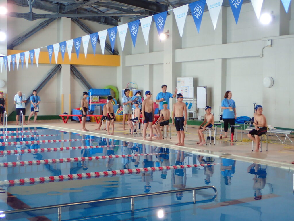 2つめは市内小学校対抗の学童水泳大会です。会場設営・競技役員の補助・パソコン入力など運営のお手伝いをしてもらいました。暑い室内で共に活動し終了した時に見せた顔は達成感に満ちていました。私共も異世代交流が出来る貴重な時間となりました。(鎌倉水泳協会)