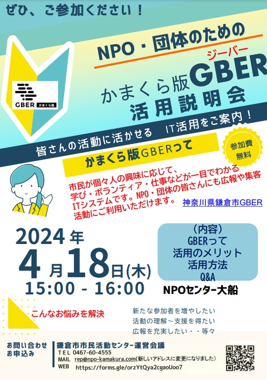 NPO・団体のお悩みを解決・・かまくら版GBER(読み方:ジーバー) 活用説明会を開催!
