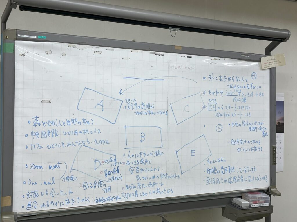 お話のあとは、グループ分けした仲間と私にとっての居場所とは?を考えたり、話したり、聴いたり、ヒントをもらったり、思いつかなかったことを提案してもらったり。NPO活動を積極展開する人たちからたくさんの意見が交わされました。