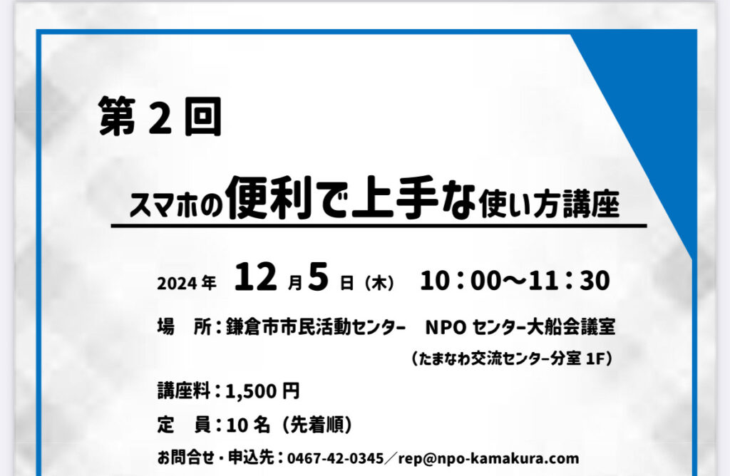 | 場所 | NPOセンター大船会議室(たまなわ交流センター1F) |