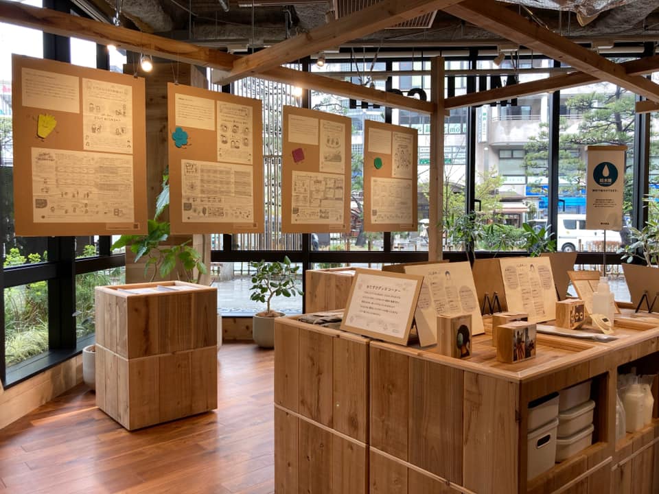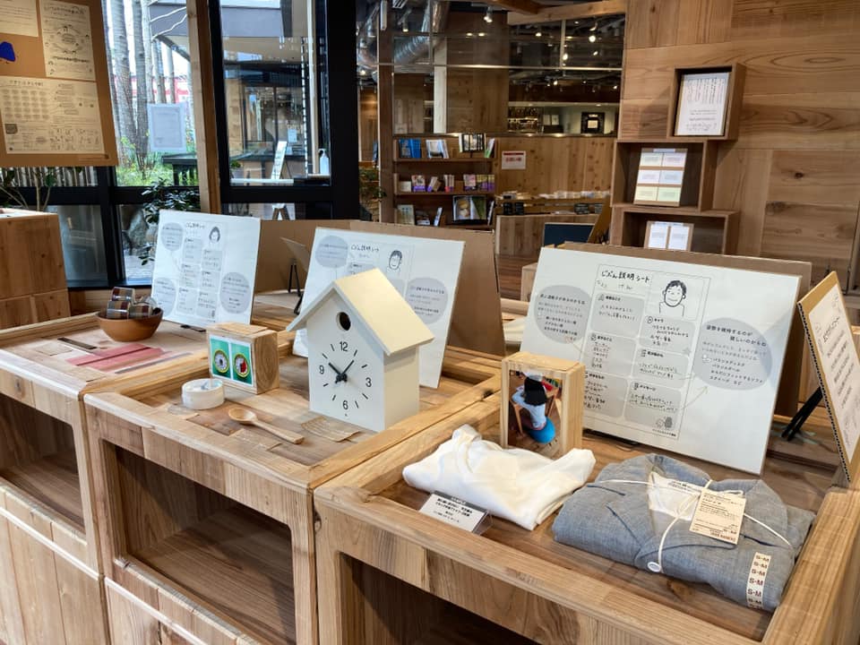 いろんなカタチ新聞の拡大版を発行順に展示し、説明を加え、福祉への関心も高い店長と共に「このような特性の方にはこの商品を使うともっと生活しやすくなる」というような無印良品の商品を組み込んでのディスプレイをしました。発達支援のノウハウと誰もが暮らしやすく安心できる無印良品のユニバーサル商品とのコラボレーション。無印良品に来店される様々な世代、また、鎌倉市以外の方、より多くの方に展示を見ていただき、発達の多様性について知っていただくきっかけになりました。