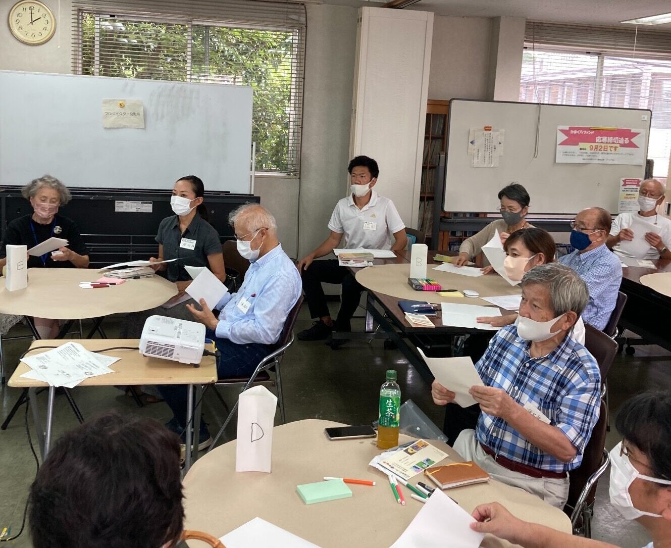 平日・昼間・リアル開催というなか、13もの登録団体の方にご参加いただきました。5つのテーブルに分かれて2回の「対話」で活発な話し合いの時間を持つことができました。テーブルごとの熱心な様子、感じとっていただけるでしょうか。