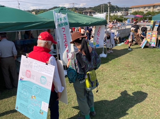 3年ぶりに開催された鎌人いち場。久々の青空の下でのイベントでした。大勢の来場者があり、コロナ禍の空白を感じさせず大盛況のうちに幕を閉じました。鎌人いち場は2009年7月に鎌倉市市民活動センターの10周年事業として産声をあげたイベントです。まさに生みの親であるNPOセンターの久しぶりの出展となりました!ブースでは、12月に開催する「かまくら市民活動フェスティバル」のお知らせや、ボランティアのマッチング、NPOセンターってこんなことやっている所です、などなど一般の方への市民活動参加の「初めの一歩」を後押しさせていただくブースに仕立てました。アンケートにご協力くださった皆様、ありがとうございました。実際に「ボランティアをやりたいです!」と登録の希望を出していただいた方も多く、センターを飛び出して出展して良かった!ぜひ、一緒に鎌倉を盛り上げていきましょう!