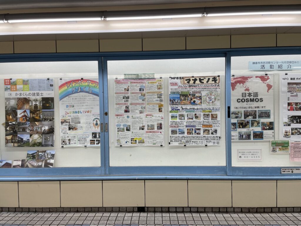 鎌倉駅下の地下道ギャラリーにて2023年5月30日から6月5日まで、NPOセンターの登録団体のうち10団体の活動内容をパネルで展示しています。鎌倉に行かれる方、ぜひ足をお運びください。