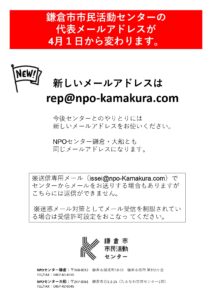 日頃より鎌倉市における市民活動の推進に多大なるご理解・ご協力を賜り深く御礼申し上 […]
